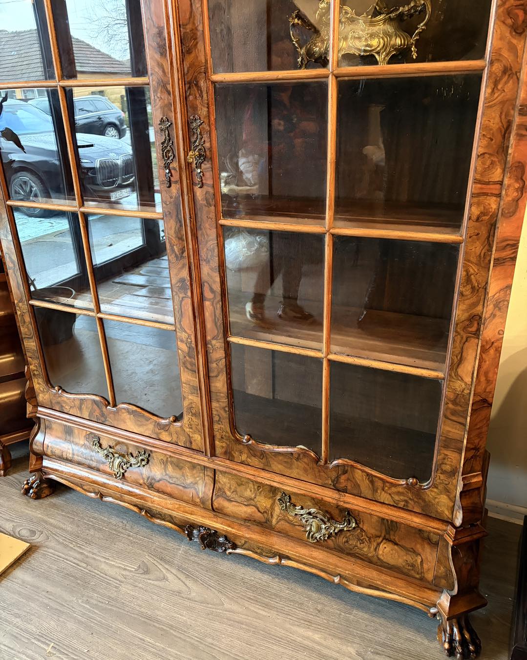 • Design "Bombe": Baza cabinetului prezintă celebra formă curbată, "bombată", o dovadă a măiestriei artizanale supreme, terminându-se în picioare sculptate tip "Gheară și Bilă".