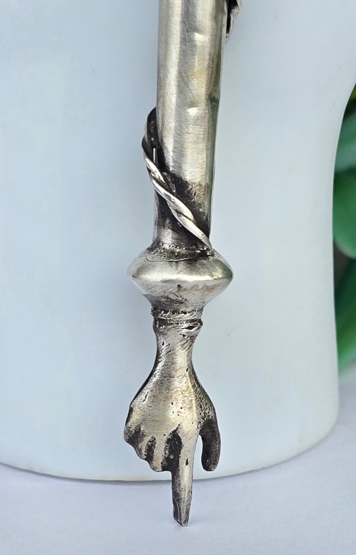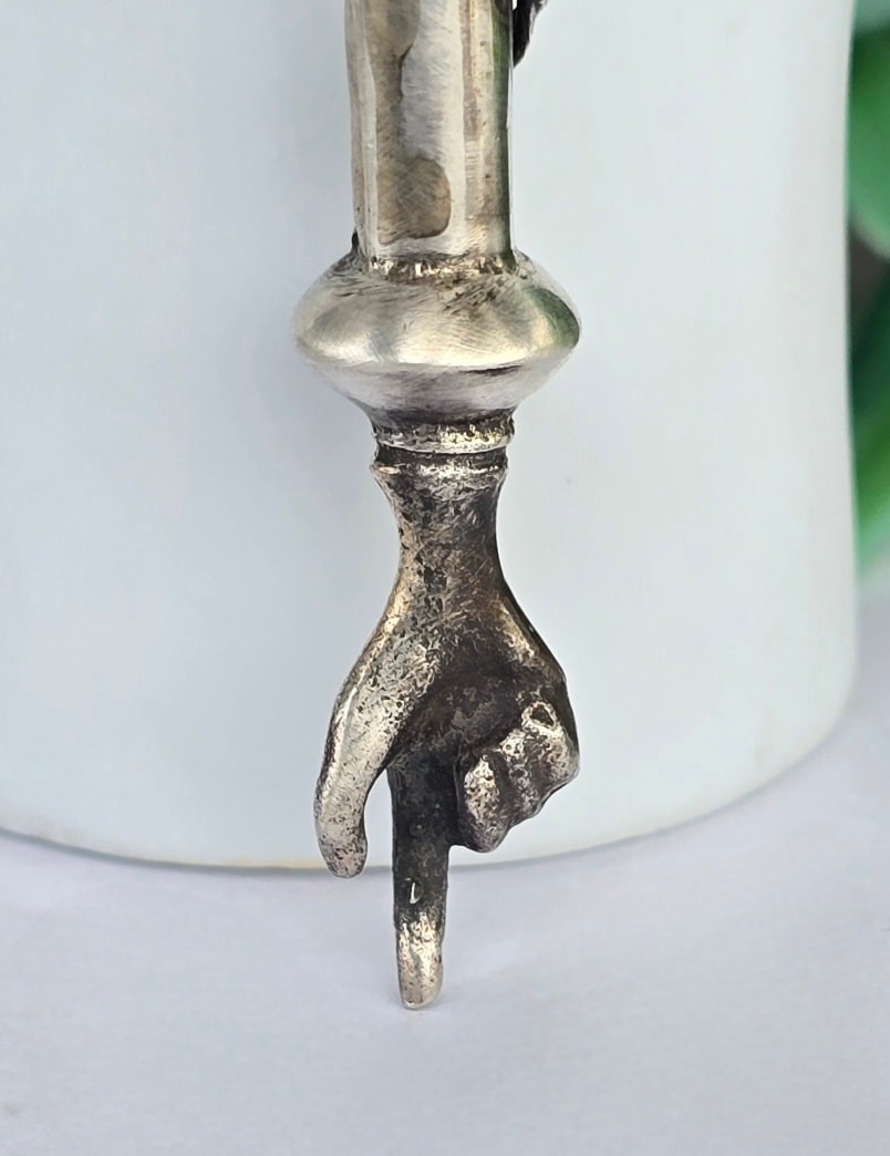 YAD (Indicator Tora) antic din argint, Rusia Imperială, anul 1894, piesă iudaică deosebită de colecție, indicator ritualic pentru citirea Torei, realizat din argint, cu detalii lucrate manual.