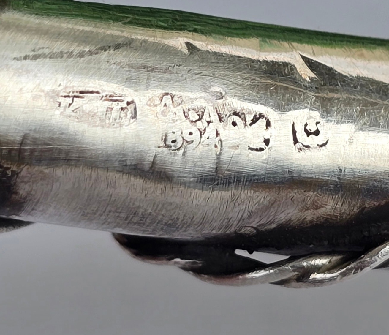 Piesa prezintă marcaje (poansoane) specifice argintăriei din Imperiul Rus, ștanțată cu anul 1894.