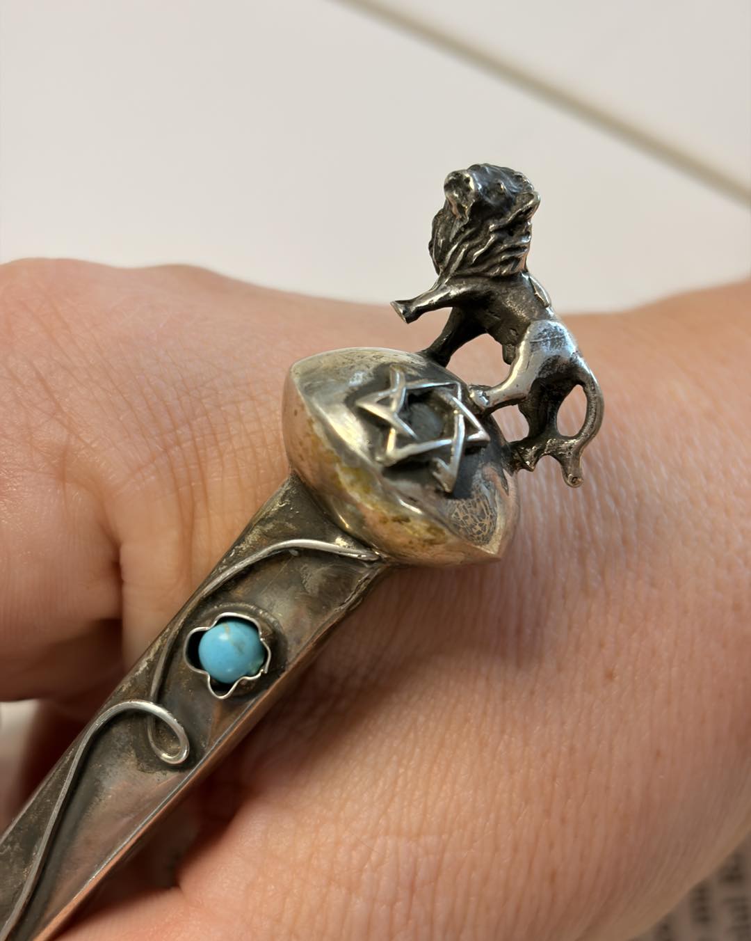 Design deosebit cu Leul lui Iuda, Steaua lui David și inserție de turcoaz natural.