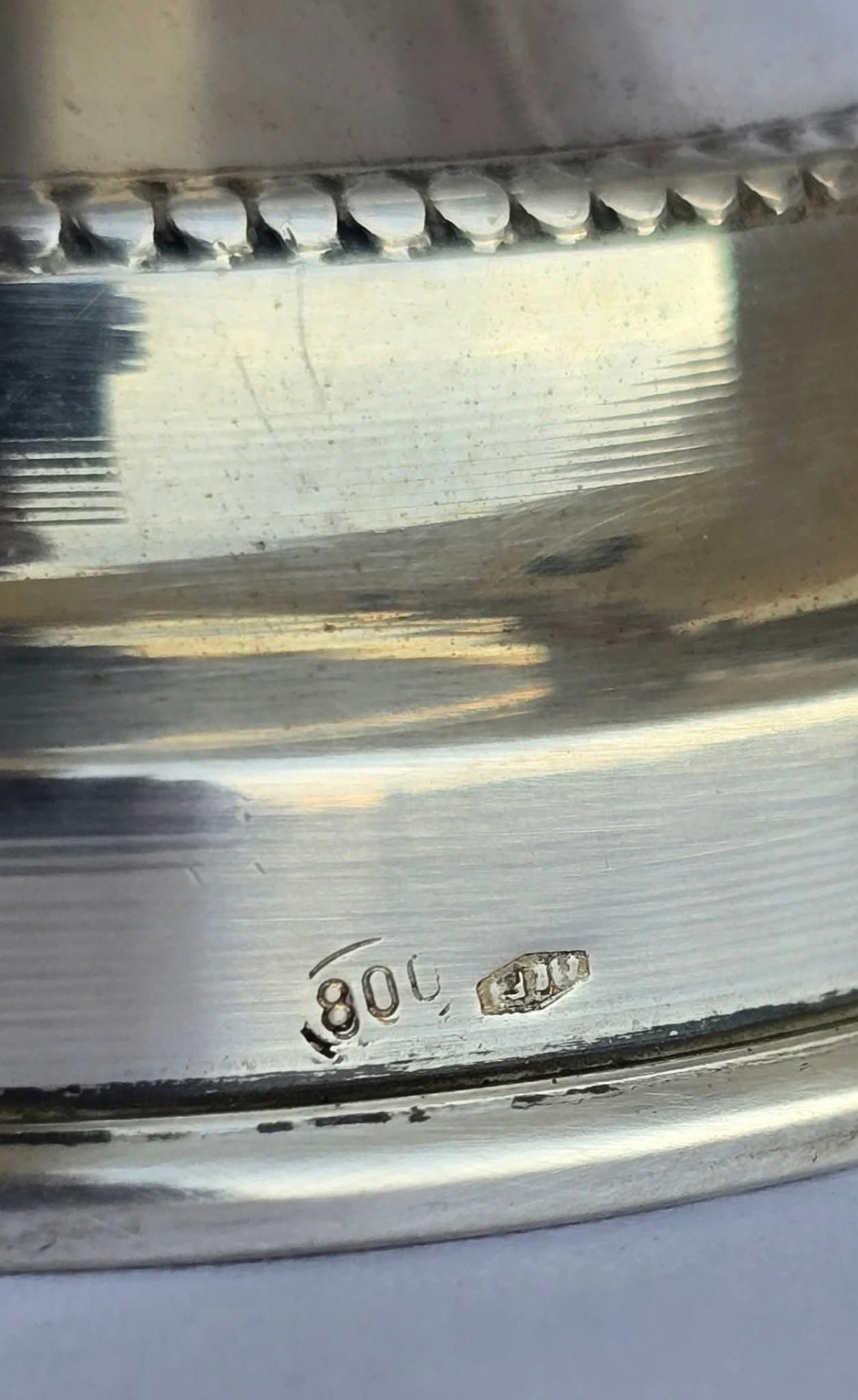 Prezintă marcaje de argint 800, marcaj de meșter și de provincie de certificare.